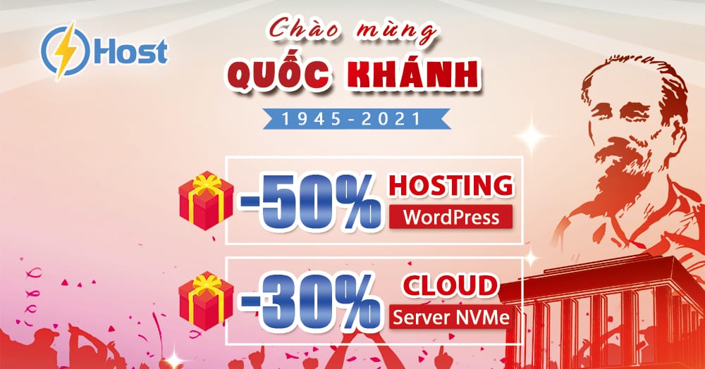 Nhân dịp kỷ niệm 76 năm ngày Quốc khánh nước CHXHCN Việt Nam (2/9/1945 - 2/9/2021), SHost xin gửi tới Quý khách hàng các chương trình ưu đãi đặc biệt -50%