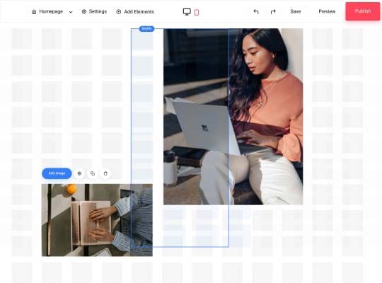 Công cụ thiết kế web kéo thả của chúng tôi giúp bạn tùy chỉnh theo phong cách riêng.
