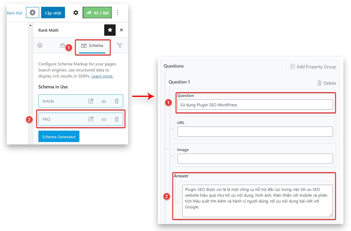 Hiện nay, trên các website WordPress đã được hỗ trợ tính năng chèn FAQ này vào schema, tôi hay dùng nhất là Rank Math để hỗ trợ chức năng này.