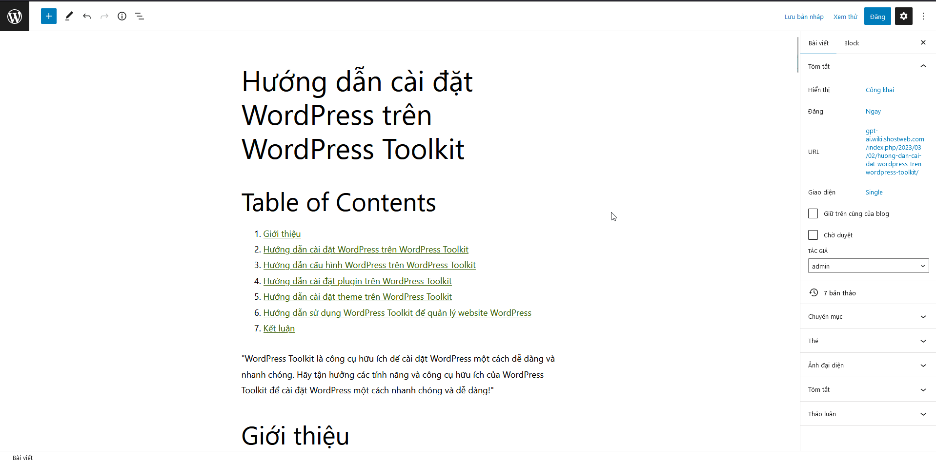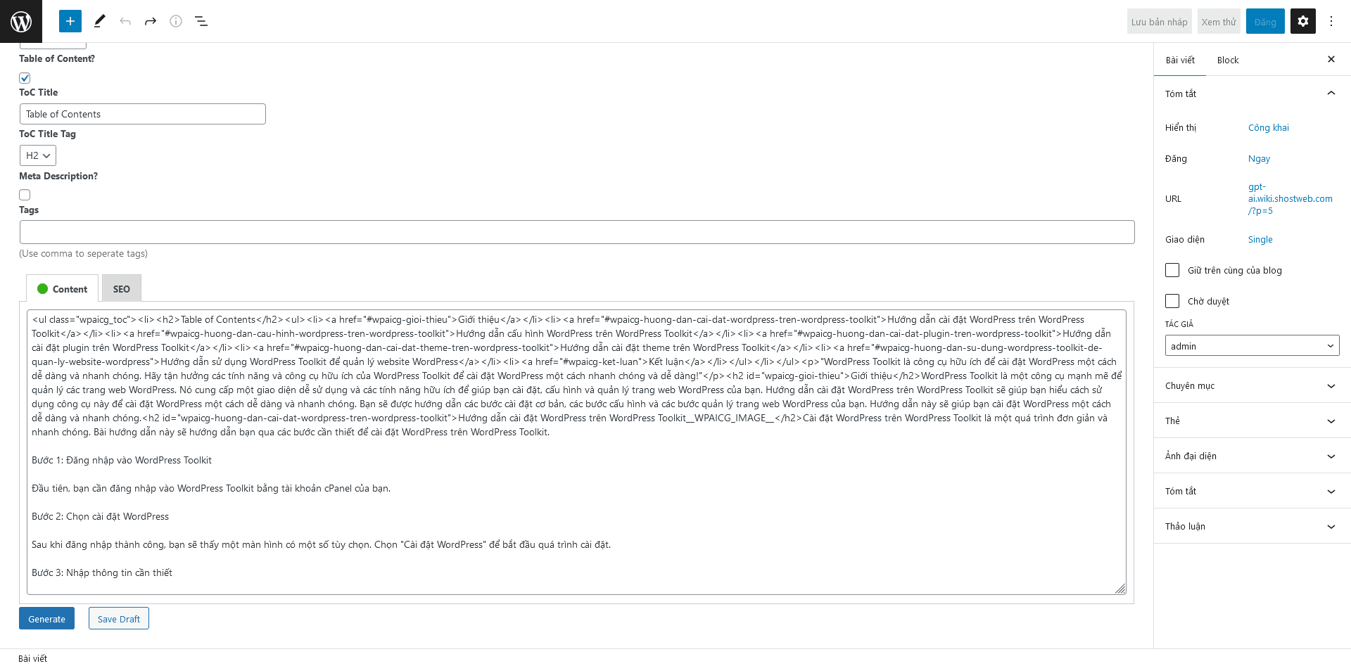 Kết quả như hình. Bạn nhấn Save Draft để lưu bài lại
