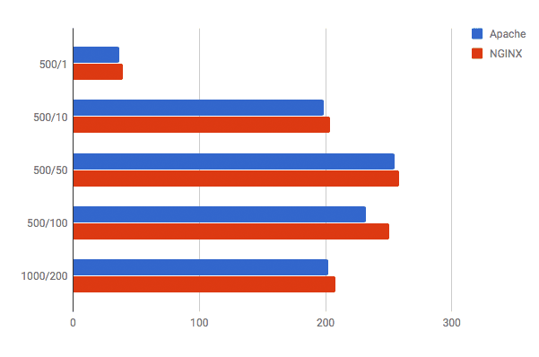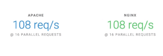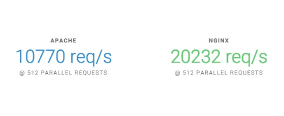 Theo một bài kiểm tra điểm chuẩn chạy lên đến 1.000 kết nối đồng thời, NGINX hoạt động nhanh hơn hơn Apache đến 2,5 lần.