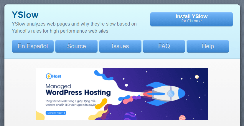 Và cuối cùng không thể nhắc tới đó là YSlow, cộng cụ kiểm tra tốc độ website khá mạnh mẽ. Tuy nhiên để sử dụng công cụ kiểm tra tốc độ website này bạn cần phải cài đặt tiện ích vào trình duyệt, nếu bạn không quan tới màn hình máy tính của bạn quá chật chội như tôi thì nên sử dụng công cụ này ^^!