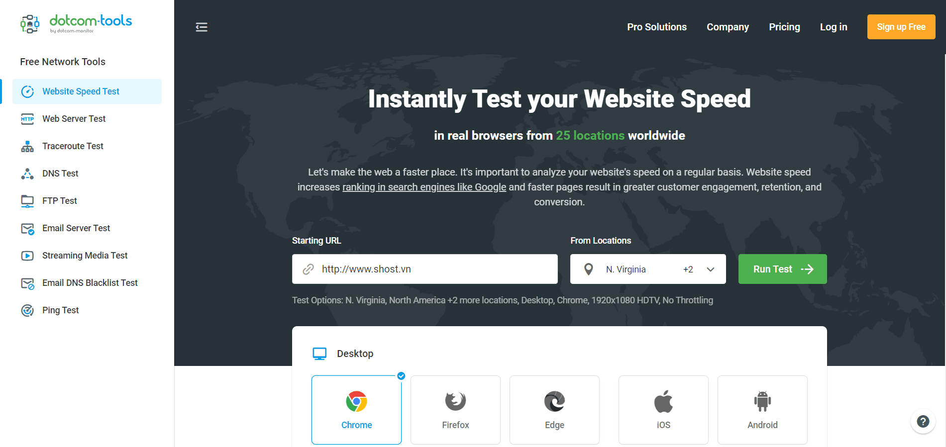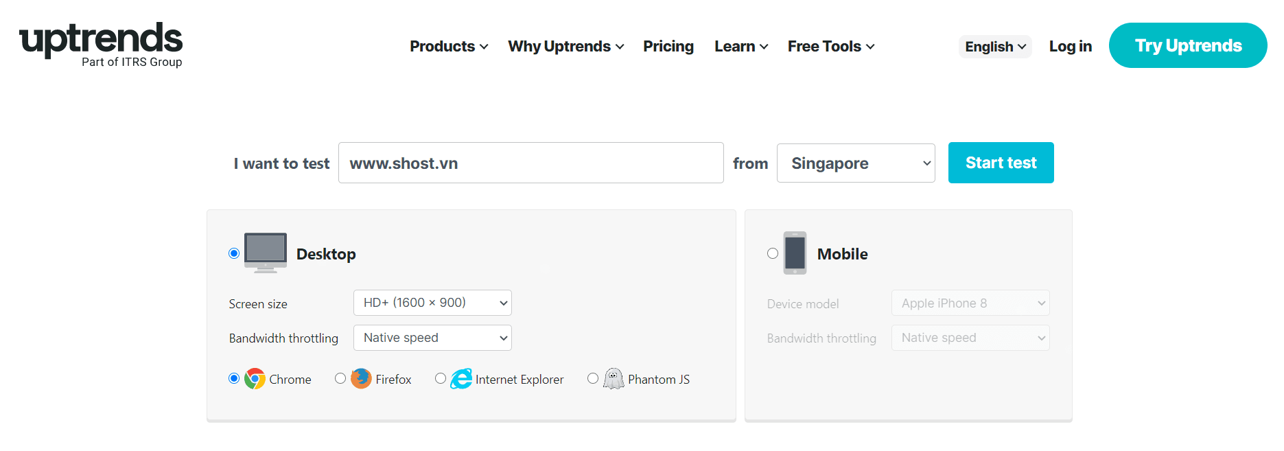 Công cụ kiểm tra tốc độ website này được người dùng rất thường sử dụng bởi tính linh hoạt, cho phép chọn nhiều máy chủ khác nhau miễn phí.