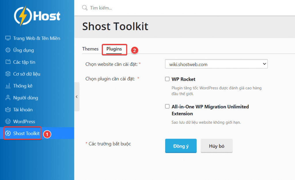 Tại bảng điều khiển Hosting, bạn chọn SHost Toolkit > Plugin